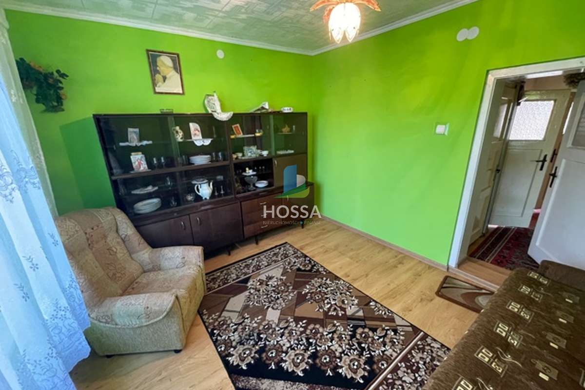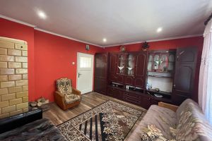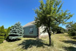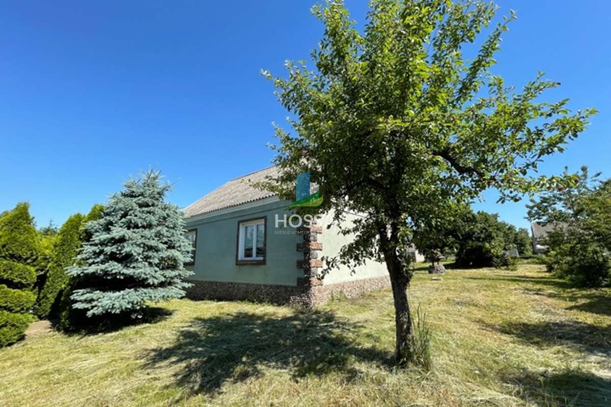 Dom parterowy, podpiwniczony o powierzchni użytkowej ok.90mkw wzniesiony z cegły, kryty dachem dwuspadowym, poszytym eternitem.