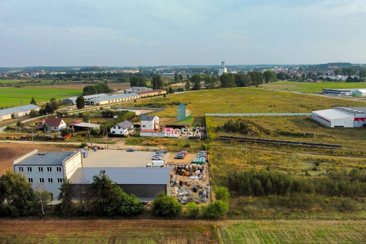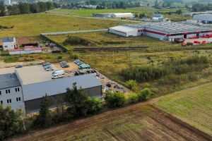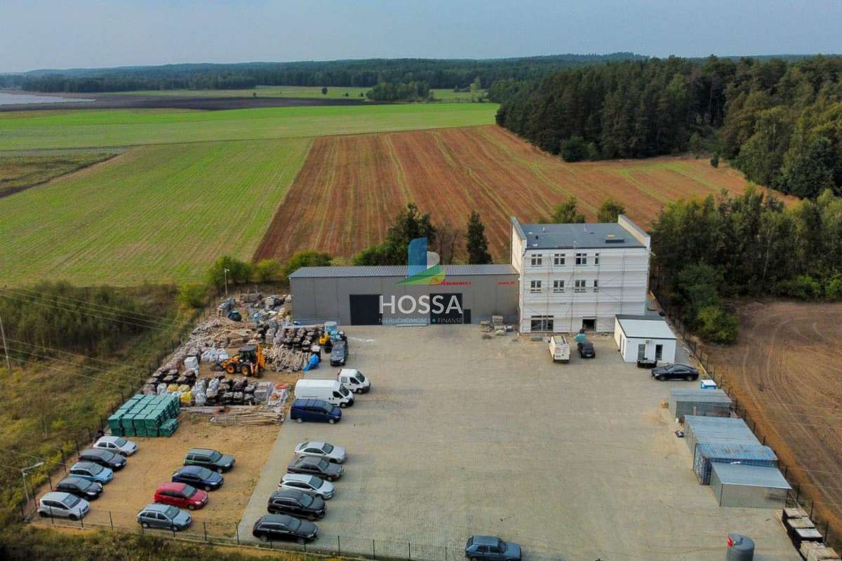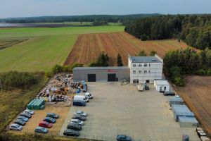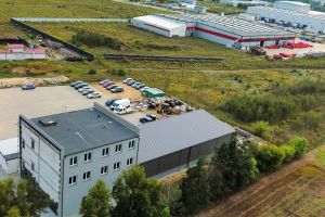 Zespół obiektów budowlanych składający się z hali magazynowej, budynku trzy kondygnacyjnego, budynku biurowego oraz placu manewrowego wyłożonego kostką brukową.