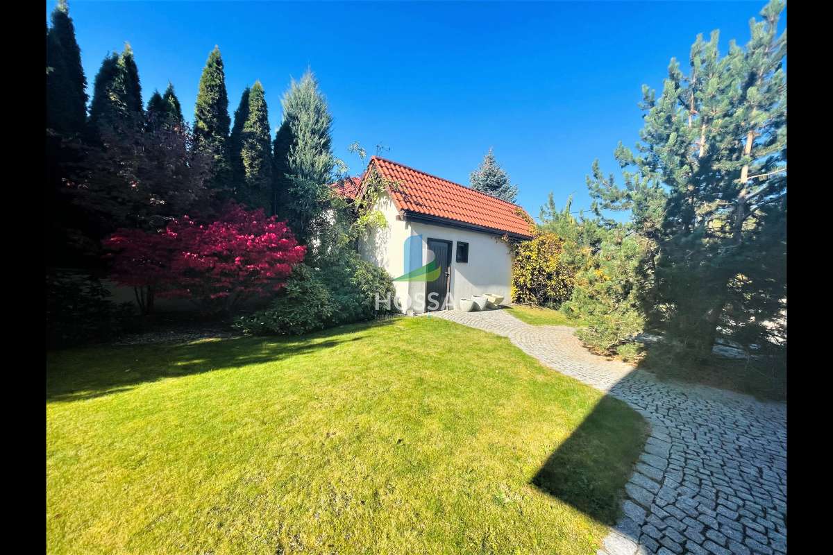 Na szczególną uwagę zasługuje wypielęgnowany ogród, który spełnia wszystkie wymogi małych i starszych mieszkańców domu. Jest tam miejsce na relaks wśród roślinności ozdobnej, zabawę na huśtawce, spacer po sadzie i totalne wyciszenie w końcowej części posesji . Podział ogrodu na przemyślane strefy funkcjonalne sprawia, że jest on w pełni wykorzystany. Tym samym, poszczególne salony ogrodowe sprawiają wrażenie większej przestrzeni i dodają tajemniczości całej nieruchomości.