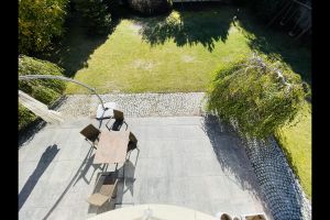 Fenomenem tej nieruchomości jest jej usytuowanie. Mało jest takich miejsc, gdzie bliskość centrum i kameralność idą w parze. Zachowanie równowagi między zgiełkiem miasta a przyrodą wydaje się nieosiągalne. Natomiast tu człowiek otrzymuje totalne wyciszenie i połączenie z naturą. Salon będący sercem domu otwarty jest na ogród i przenika sie z jego otoczeniem.
